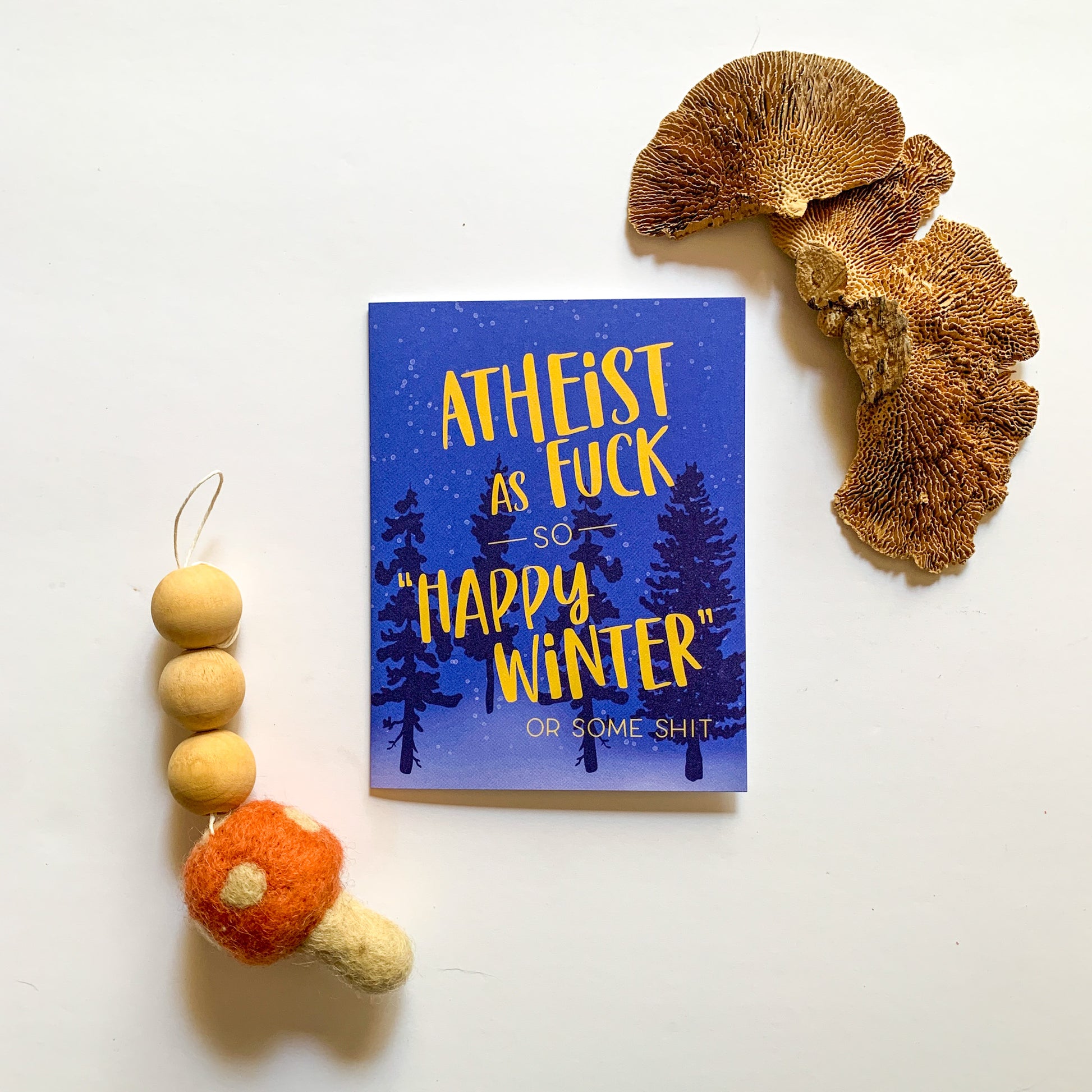 Front of Card Text: "Atheist AF - So 'Happy Winter' or Some Shit"